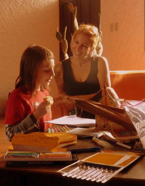 Lainie & Miro working on an art project together