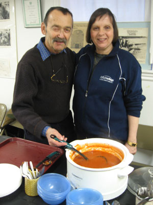 buckets from the Food Bank, sometimes it is delivered in cans as
