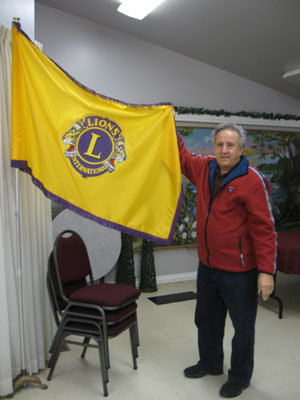 Joe Bordieri shows the Lions Club flag