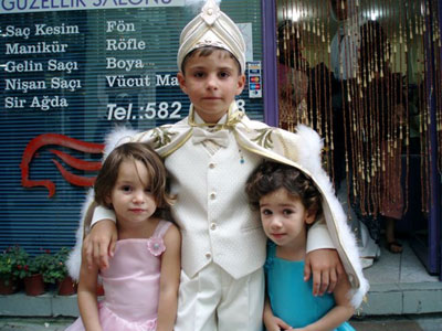 Turkish boy off to his circumcision ceremony (not smiling for
