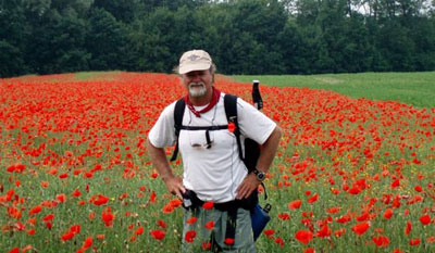 Brandon Wilson, author/pilgrim, amid the poppies of Hungary.