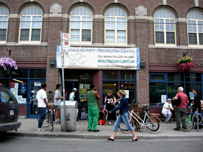 Scene in front of the Parkdale Recreation Centre: "A Living