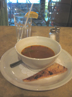 and leeks in a pesto-cream sauce, sprinkled with pine nuts. Soups