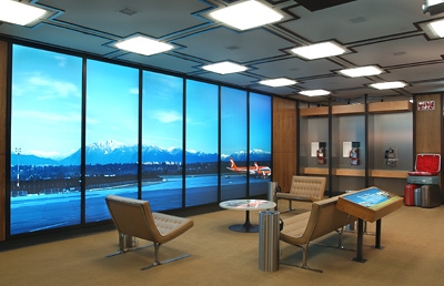 (19,182 sq. ft.), and has a 112 m x 15 m (365 ft. x 50 ft.) glass