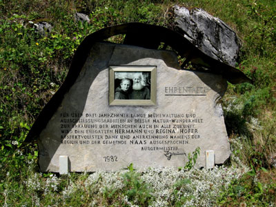 A memorial to the original explorers, Hermann and Regine Hofer