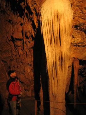 delicate white and coloured limestone curtains, and stalagmites
