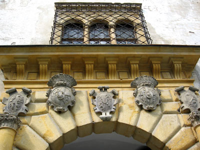 Coats of arms above the entranceway