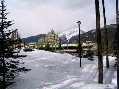 back on a paved parking lot right next to the Banff Springs Hotel.