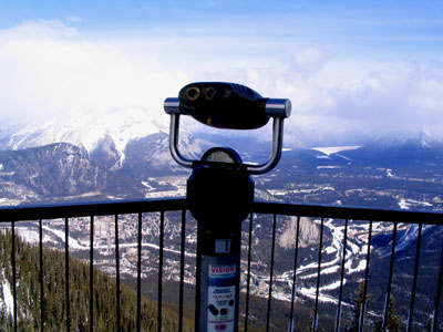 in mist and cloud, but the view from Sulphur Mountain is one of