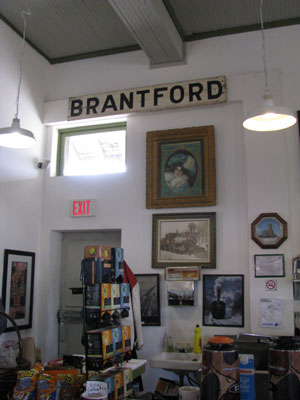 sports an authentic station sign for Brantford and