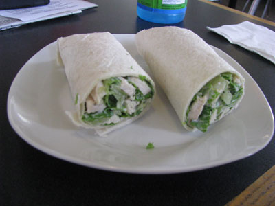 soup, followed by a chicken wrap, a perfect choice.