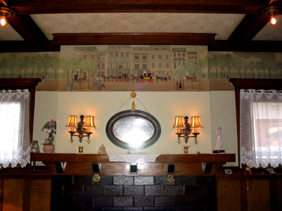 The parlour features a wall surround wallpaper with scenes of Hyde