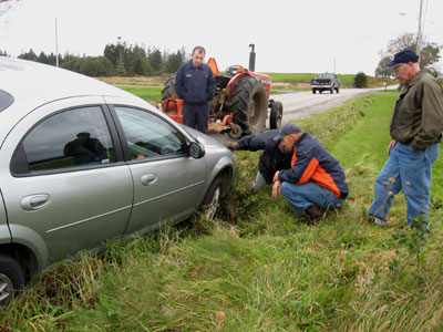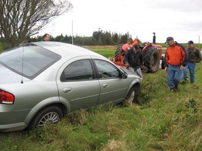 My car is in the ditch in Chebogue