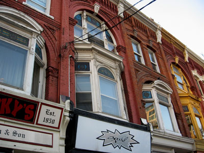 A few steps east is a series of Victorian townhouses that, as Bruce