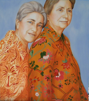 A painting of Nancy and Andie