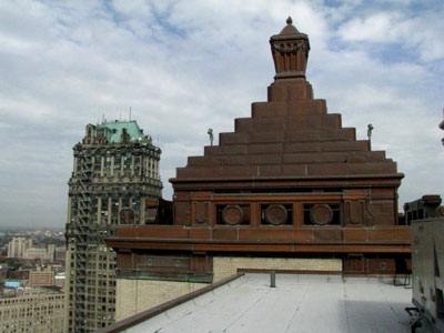 One of the Westin's ziggurat's, framed by the historic Book Tower