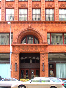 buildings. The red colour and detailed ornamentation of Louis Sullivan's