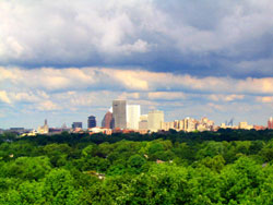Rochester's skyline, from the Cobbs Hill Reservoir
