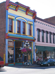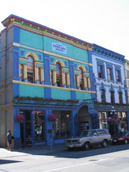 inland towards the quaint Oak Bay shopping area, bedecked in hanging