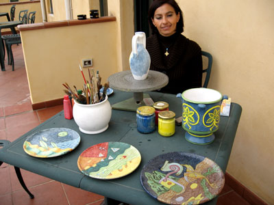 another walk through town to meet Donatella, the pottery decoration