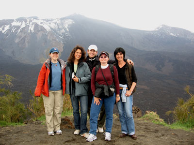 Some of us posing in front of Mount Etna's summit