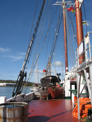 On the deck of the Theresa E. Schooner