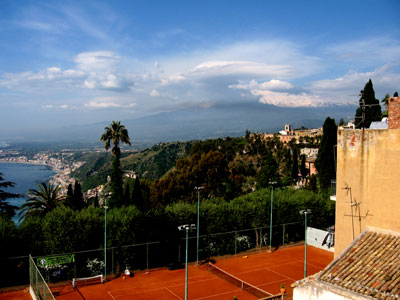 View towards Mount Etna from the rootop of the Babilonia Language