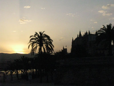 The sun is setting behind the Cathedral in Palma