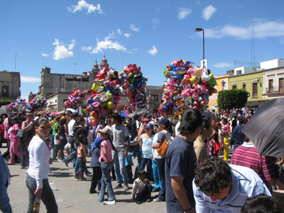 Colourful balloons in front of San Agustín