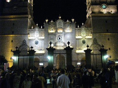Huge crowds in front of the Cathedral of Morelia