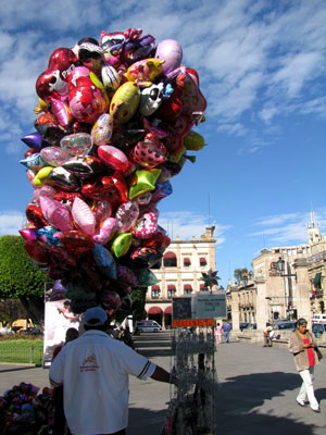 Balloon vendor on Morelia's Plaza de Armas, in front
