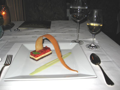 a vanilla and Szechuan pepper mousse on a chocolate base with a