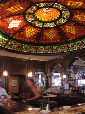 beautiful woodwork and a magnificent handcrafted glass dome ceiling