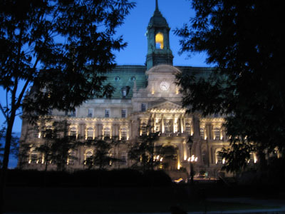 Montreal City Hall, all lit up at night