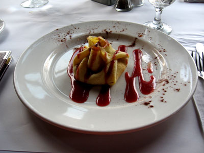 a "crepe baluchon" with pears. Crepe is always one of