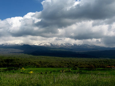 The vista towards Mount Etna, the Alcantara Valley and various mountaintop