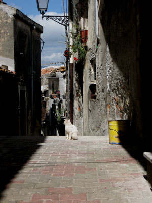 entire mountain area. Sleepy cats were lounging lazily on the pavement,