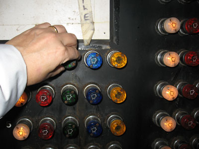 a horse & carriage, an arrangement of grapes and wine, a menorah