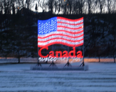 Falls I was greeted by the Canada/US Illuminated Flag.