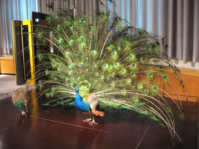 nearby doors. Two big pre-historic flying reptiles, Pteranodons,