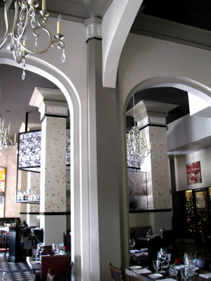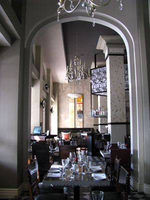 the sleek modern 120-seat restaurant on the- main floor of the Hotel