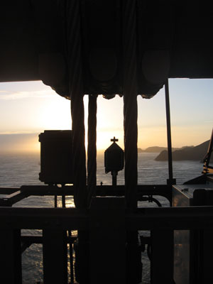windows. The view includes the northern tip of the Golden Gate Bridge,