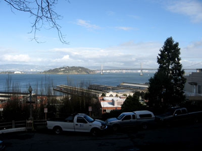landmark: the Coit Tower on Telegraph Hill. Walking up the steep