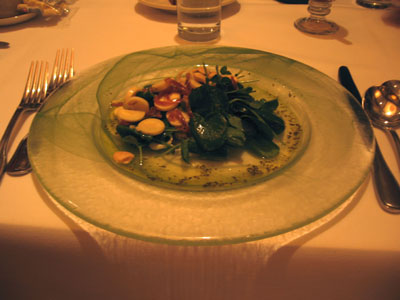 of Palms Salad, garnished with Serrano ham, Marcona Almonds, living