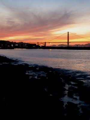 Sunset scene with Fort Mason in the foreground