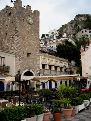 The famous Torre dell'Orologio and the Wünderbar in Taormina