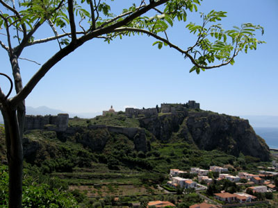 into the sea. The tip of the peninsula is called Capo Milazzo which