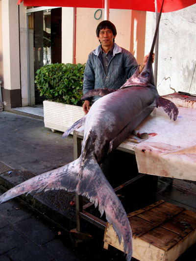 eyes. Another fishmonger had just a head of a swordfish on display,