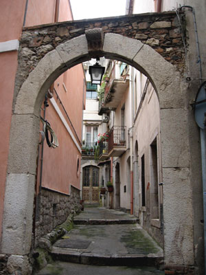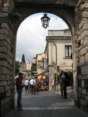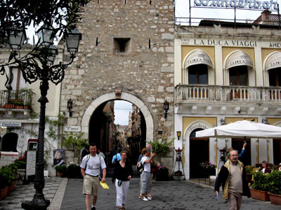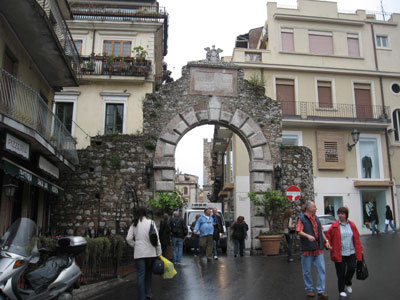 The Porta di Messina in Taormina, rainy weather on my first day...