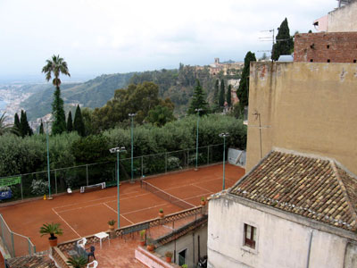 View of tennis courts towards Mount Etna from the Babilonia Language